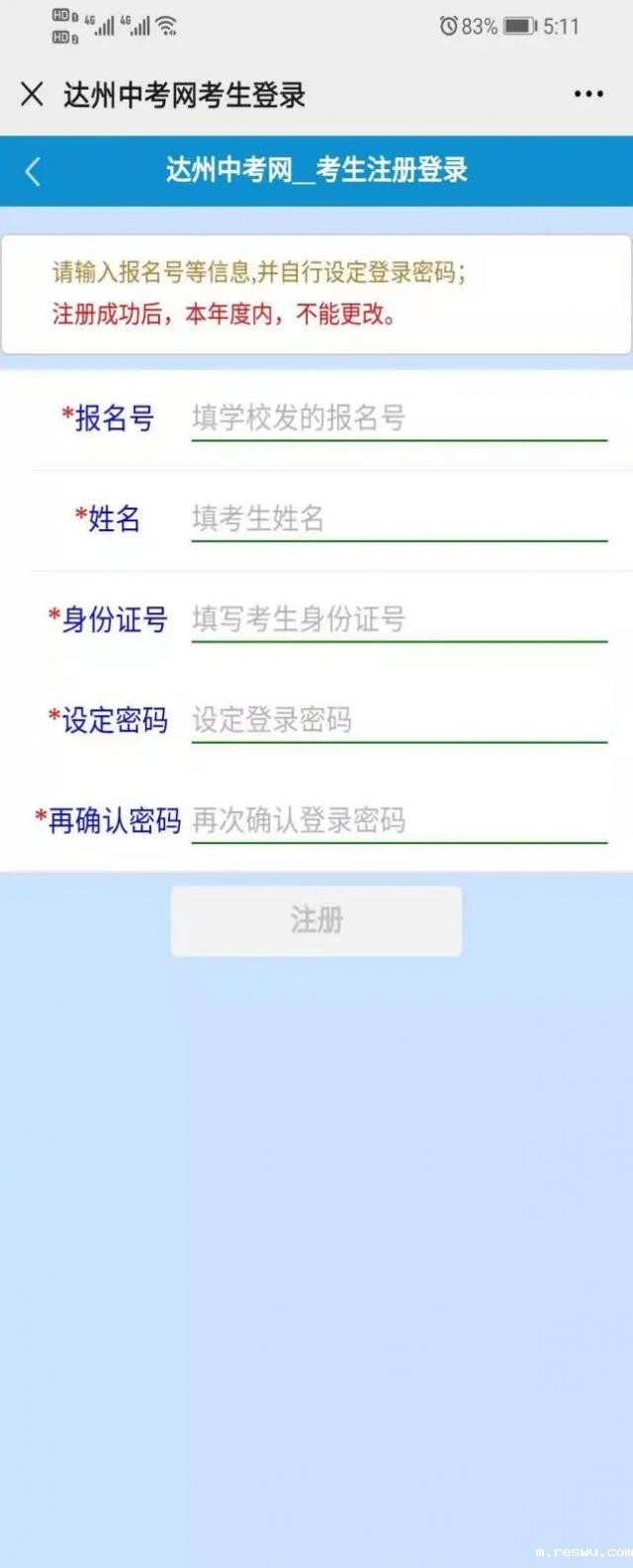 * 报名号由考生就读学校下发。姓名和身份证就是考生本人的信息。密码自行设定,并记牢;后续登录将会使用。