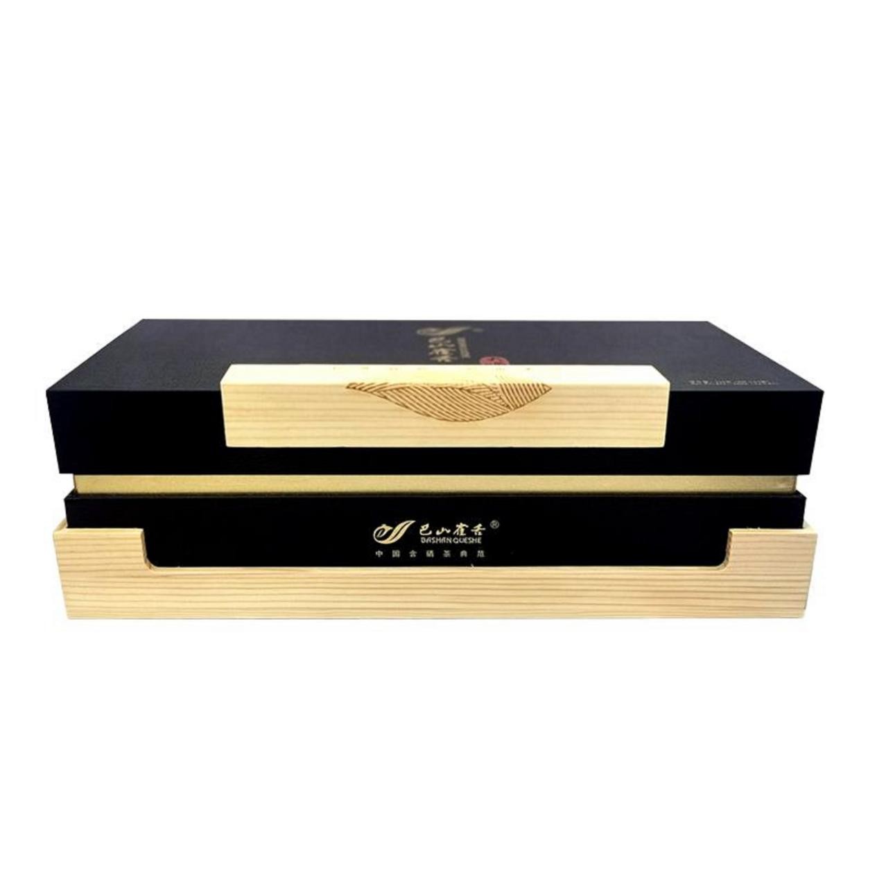 古高山出好茶,巴山雀舌大师级采自大巴山高山品质茶叶朝饮清风暮饮霞,颗颗新鲜采摘,芽头细嫩鲜爽,茶汤鲜绿,清澈见底,香醇干爽,入口香醇自然远离污染,生态之源,品质如一。干茶:鲜嫩饱满,翠绿挺直,扁平光润,颗颗饱满精致。汤色清凉,芽叶林立赏心悦目鲜香醇爽。叶底黄绿明亮,柔软厚实,芽叶柔嫩较均匀。这款包装以黑色为底,意在体现稳重、高端大气、庄重,金色字体彰显财富、富贵,大师字样用红色经典点缀,起到画龙点睛的作用,原木镶边上雕刻茶嫩叶一片;意回归自然,彰显茶的本质。